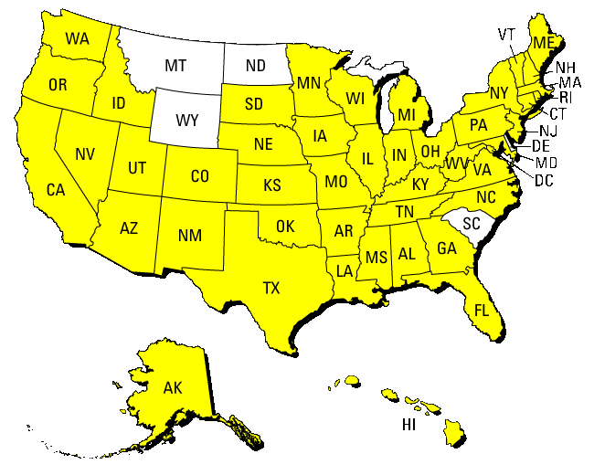 South Carolina South Dakota Tennessee Texas Utah Vermont Virginia Washington Washington, D.C. West Virginia Wisconsin Wyoming