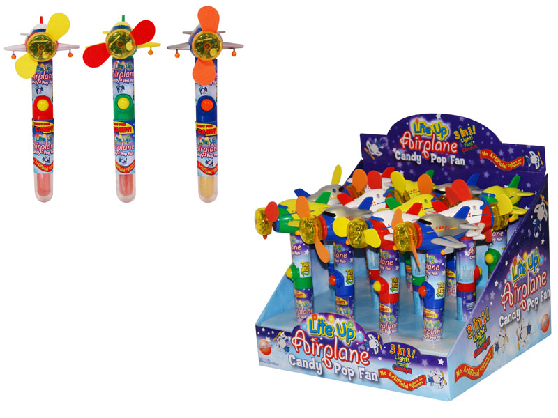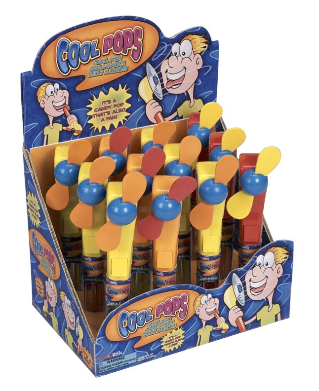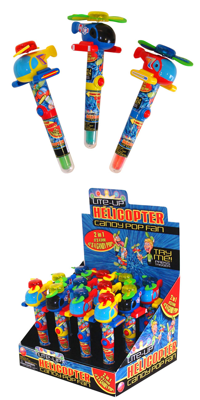 Item 2040: Lights change patterns as the powerful, child-safe fan spins. Lollipop in the handle. Packed (6) 12 count displays per case |
