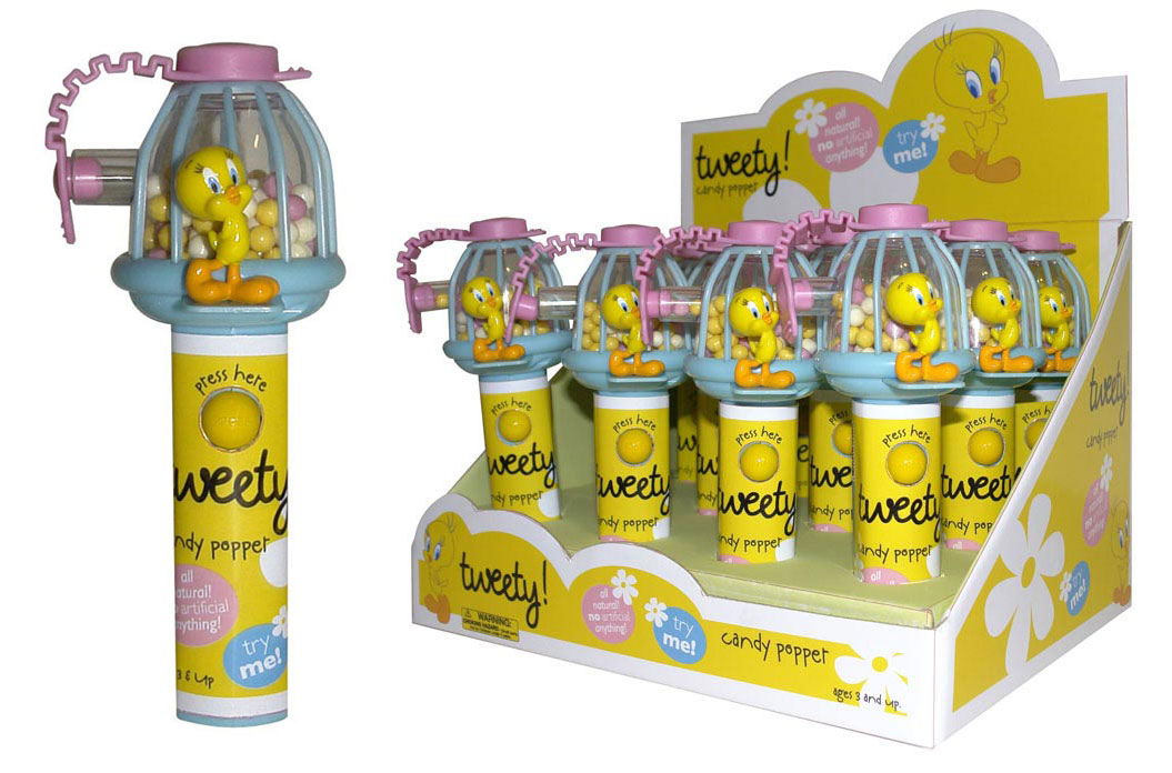Item 4575: Shake it to the left, shake it to the right- Tweety giggles! Lollipop in the handle. All natural, nothing artificial! Packed (6) 12 count displays per case